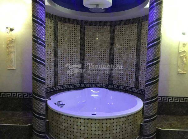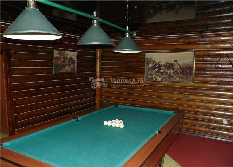 Гостиная с мягкими диванами, комнатой отдыха. Финская сауна, обливное ведро и большая ванна диаметром 1,5 м. Американский бильярд, караоке, аудио-видео аппаратура, Wi-Fi.